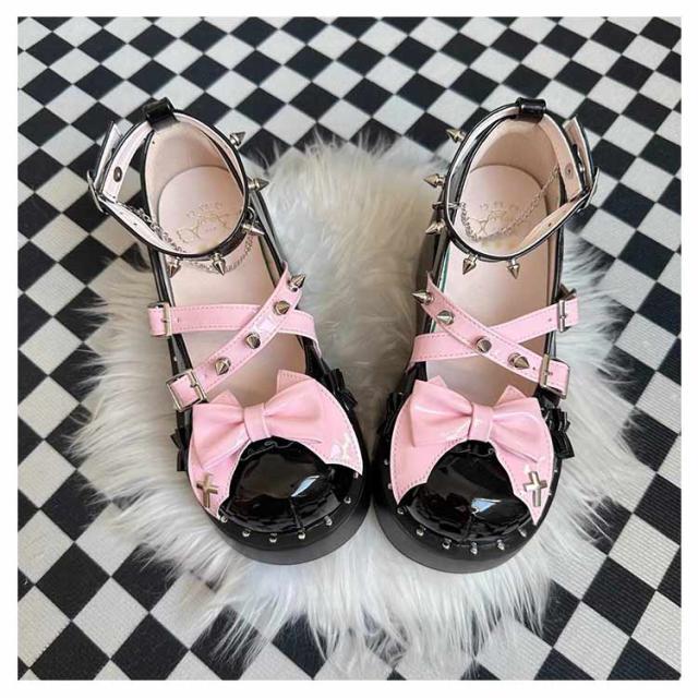 ロリータ リボン ロリィタ メイド 靴 ゴスロリ 厚底 おでこパンプス ロリータ レディース おでこ靴 パンプス ストラップ ローファー 厚底靴 地雷系 量産型 参戦服 闇属性 ゴシック ゴスロリ 6cmヒール