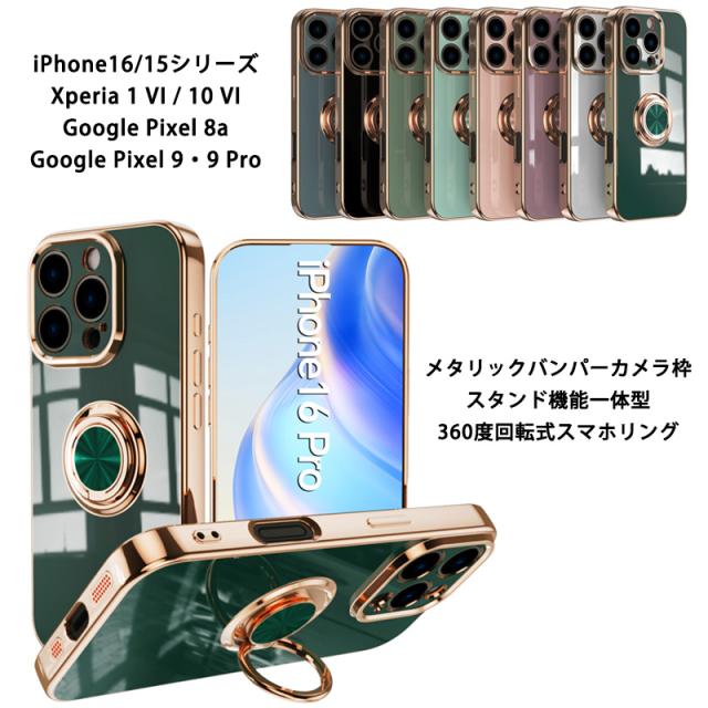 360度回転式 スマホリング iPhone16e iPhone16 iPhone16Plus iPhone16Pro iPhone16ProMax iPhone15 iPhone15Plus iPhone15Pro iPhone15ProMax Xperia 1VI 10VI 1V 10V Galaxy S24 Ultra S25 Ultra AQUOS sense9 Google Pixel9 9Pro ケース スタンド機能 メタリック TPU カバー 車載ホルダー アイフォン16 16プロ マックス アイフォン15 ストラップホール 軽量 薄型 TPUケース スマホリング スタンド 車スマホホルダー スマホケース カメラ保護 おしゃれ かわいい 携帯ケース iPhoneケース スマホカバー ソフトケース くすみカラー