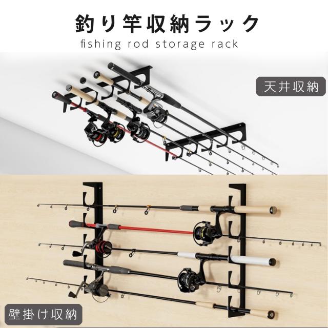 釣竿収納ラック 壁掛け 天井収納 ロッドホルダー 5本掛け フック 整理整頓