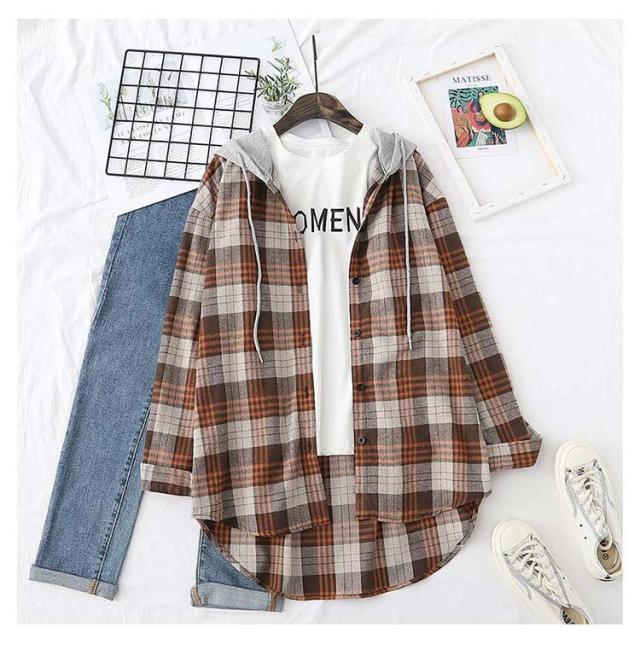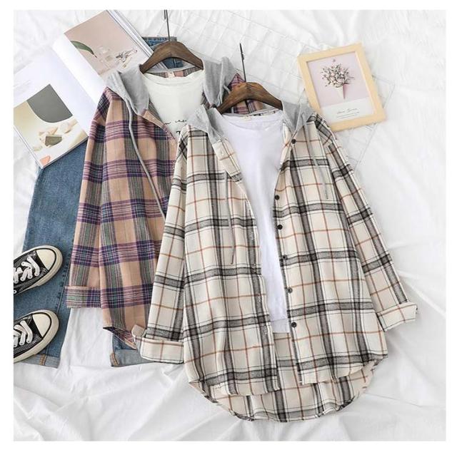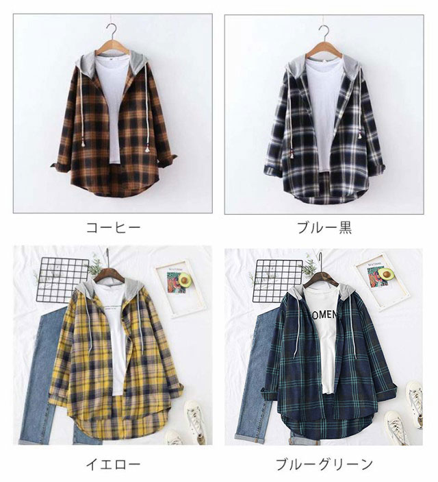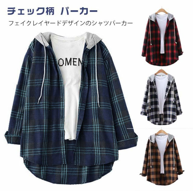 チェック柄 パーカー 韓国風 シャツパーカー 定番 レディース ライトアウター アウター シャツ ストリート系 羽織 個性的 ダンス衣装 ジャージ ライトジャケット フード付き 韓国ファッション アウター ゆったり 体型カバー カジュアル 送料無料