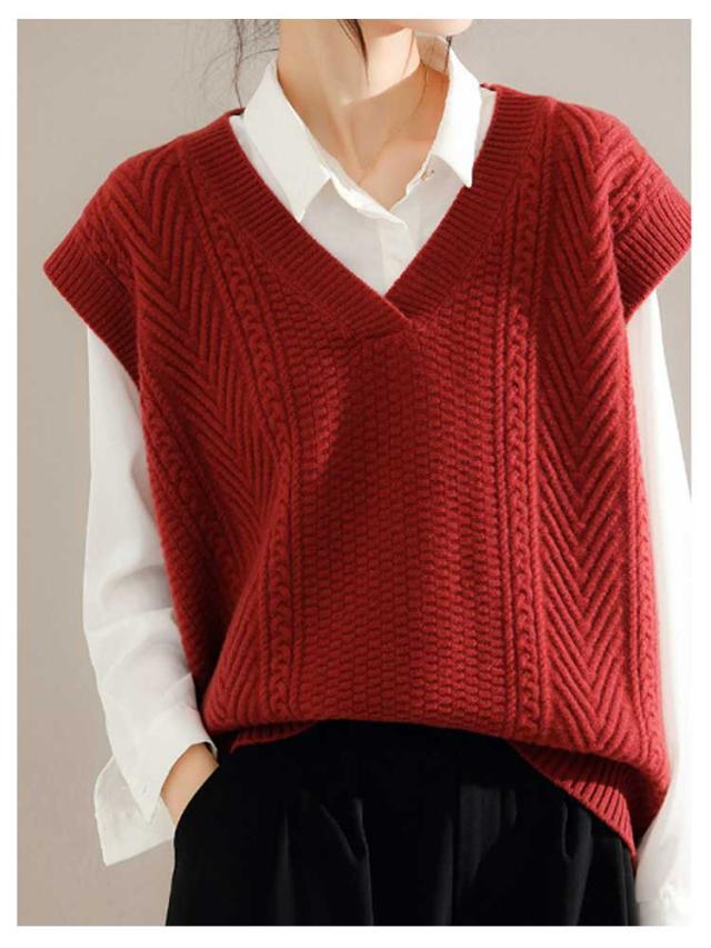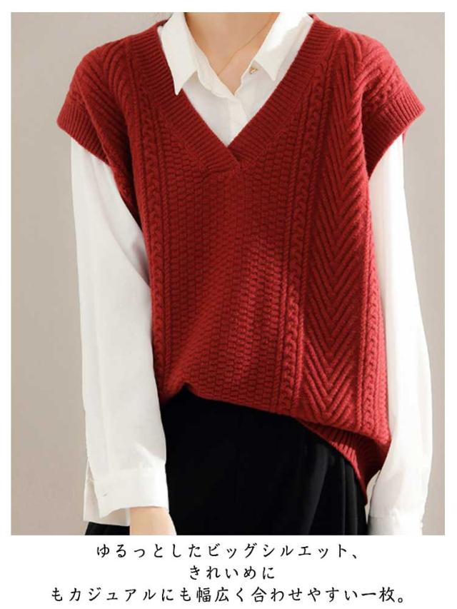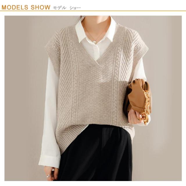 ニットベスト ケーブル編み ベスト Vネック ベスト ノースリーブ ニット トップス レディース 大きいサイズ ビッグ オーバーサイズ ニット チョッキ ノースリーブ 体型カバー ニットタンクトップ 普段着 レイヤード 重ね着