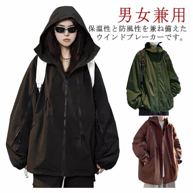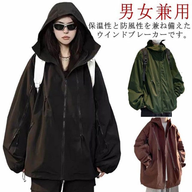 マウンテンパーカー ジャケット ウインドブレーカー フード付き メンズ レディース アウター 大きいサイズ オーバーサイズ 防寒 防風 春秋 男女兼用 軽量 無地 アウトドア スポーツ キャンプ 釣り 登山 バイク 送料無料