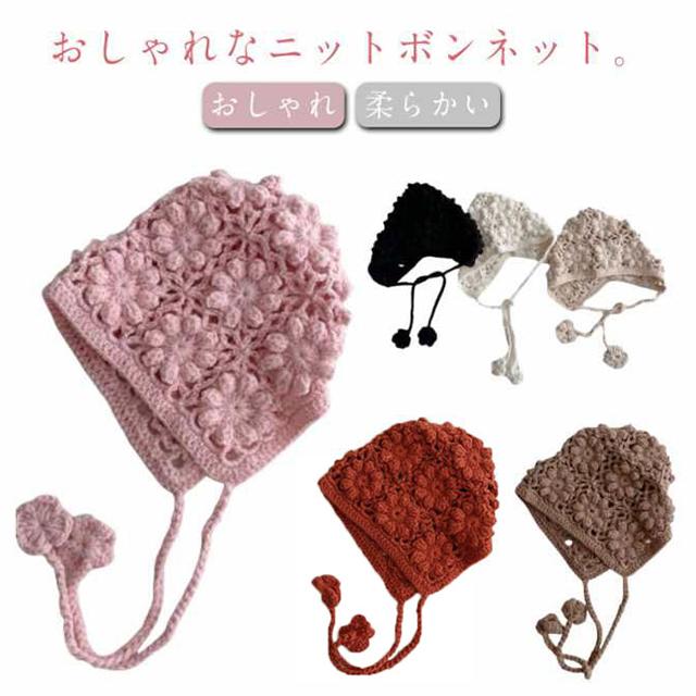 | おしゃれなニットボンネット。 透かし編みがおしゃれです。 プレゼントやギフトにもおすすめです。 | |