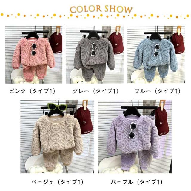 | 80-140cm もこもこ 便利な2点セット お揃いカラーがかわいいトップス&パンツ ぬくぬく便利な2点セット。 ウエストゴム ウエストはゴムでラクチン♪ 袖囗・足口もゴム入りで、きゅっとしっかり暖かい 優しい肌触り もこもこふわふわな厚手生地が心地いい | |