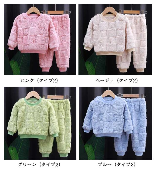 2点セット パジャマ キッズ 女の子 男の子 冬 長袖 冬用 パジャマ キッズ パジャマ ルームウェア もこもこ 可愛い 冬 ルームウェア もこもこパジャマ パジャマセット 上下セット 裏起毛 かわいい おすすめ Uネック 韓国子供服 100 110 120 130 140