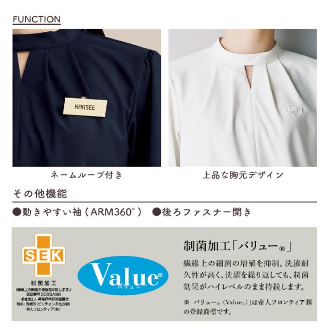 レディース 8分袖 シャツ ブラウス 透けにくい ストレッチ UVカット 吸汗速乾 制菌 事務服 オフィス 受付 事務 リクルート 制服 ユニフォーム OL かわいい 春夏 秋冬 カーシーカシマ ENJOY kk-nwb029