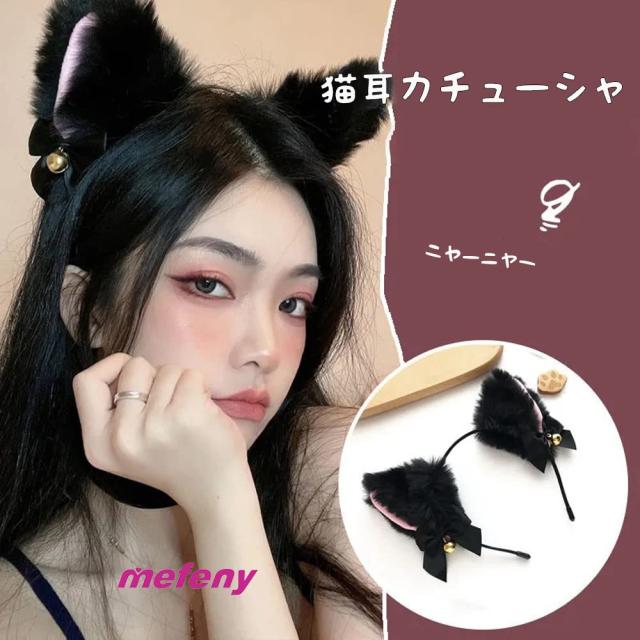 猫耳 カチューシャ 鈴付き 狐耳 獣耳 猫 コスプレ ふわふわ ハロウィン 仮装 コスチューム 黒