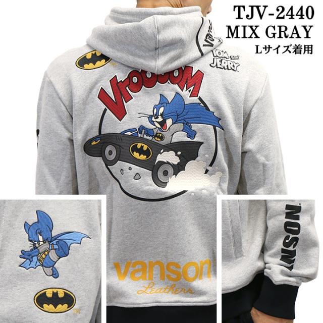 VANSON×TOM&JERRY Warner BROS.ワーナー100周年記念 バンソン トムとジェリー バットマン コラボ 裏毛F/Zパーカー tjv-2440