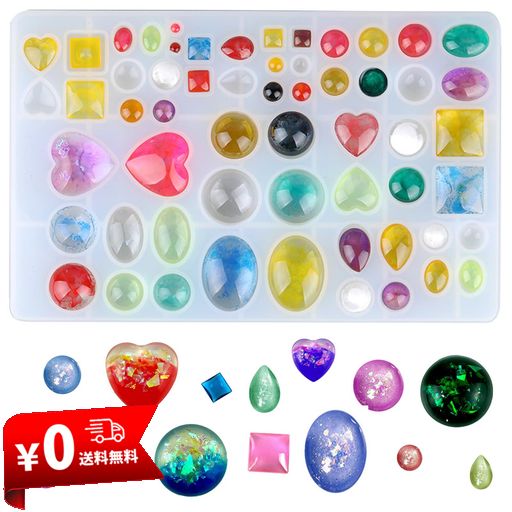 【製品仕様】:●「シリコンモールド」さまざまな形状の58種類の宝石の組み合わせ●「サイズ」画像をご参照ください ●「耐熱温度」:約-40~230°C ●「素材」:シリコン
