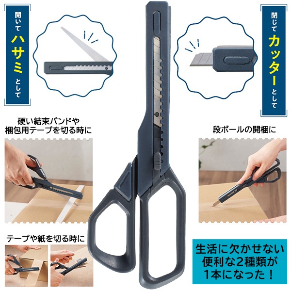 生活に欠かせない便利な2種類が 1本になったカッターはさみ! | |