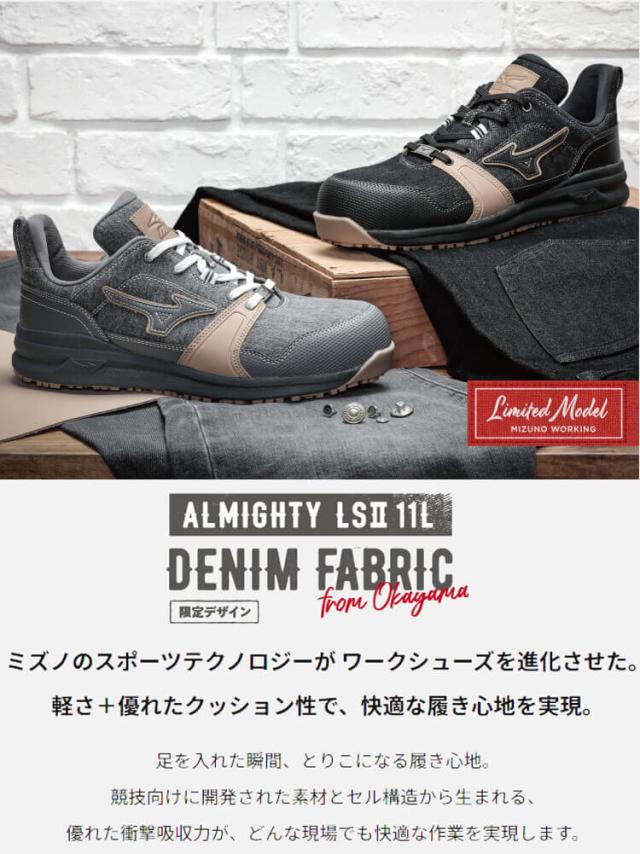 [即日発送][数量限定]安全靴 ミズノ mizuno プロテクティブスニーカー F1GA2414 オールマイティ LS II 11L DENIM デニム 紐タイプ