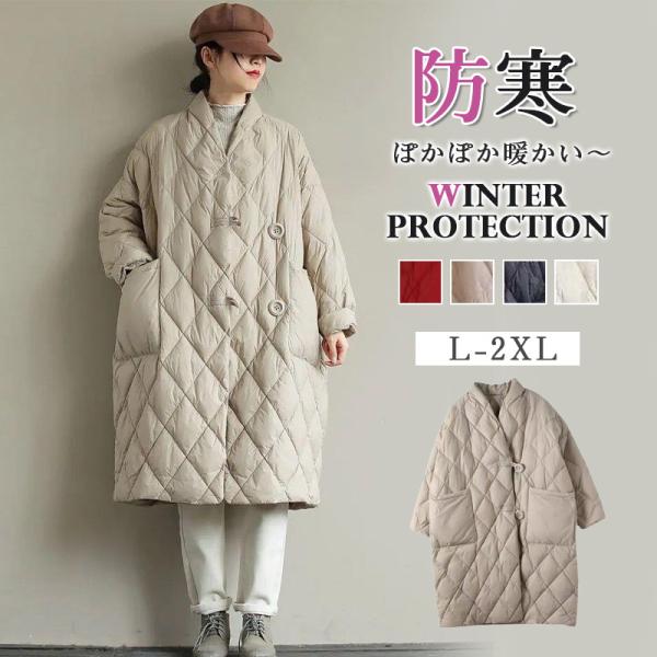 キルティングジャケット ダウンコート レディース ロングコート おしゃれ フェイクダウン 冬 中綿コート フード付き 防寒 アウター 大きいサイズ