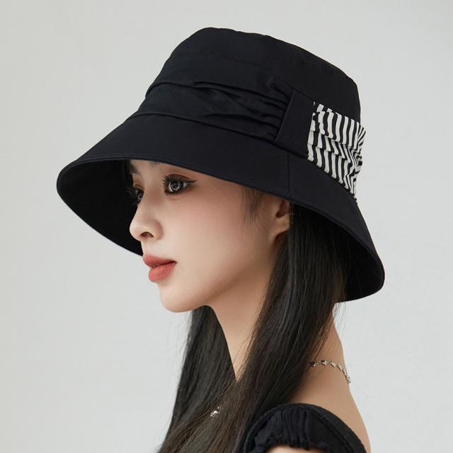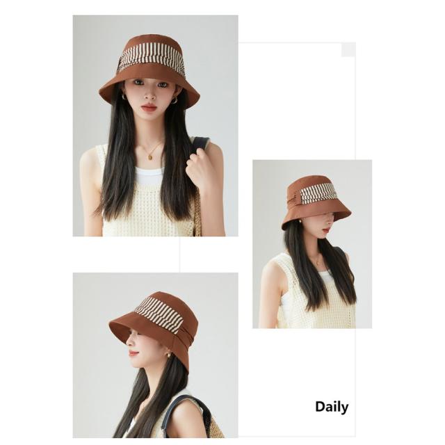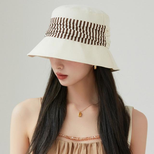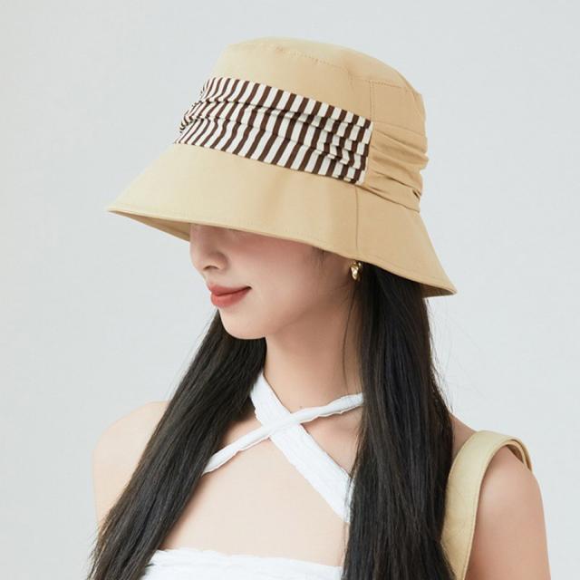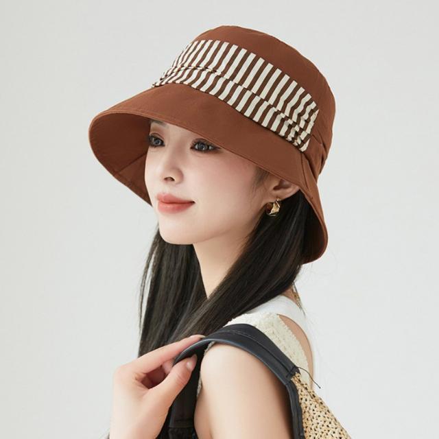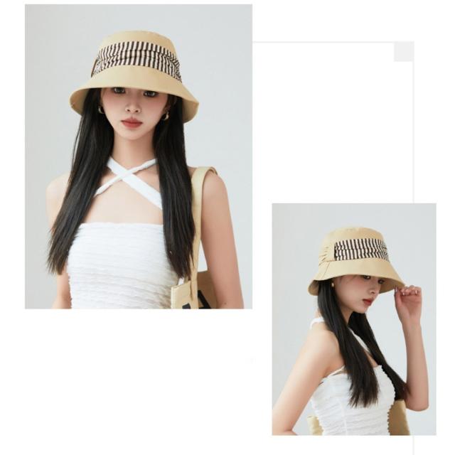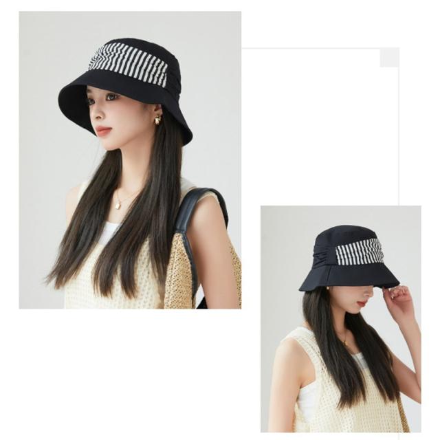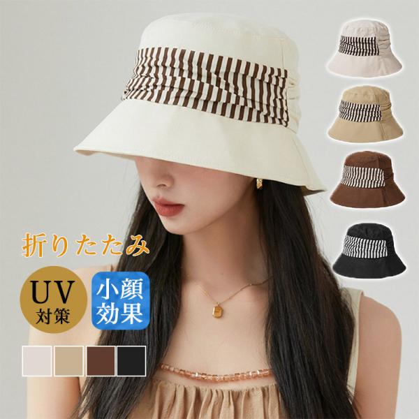 帽子 レディース 大きいサイズ ストライプ柄 遮光100%カット UVカット つば広 折りたたみ 自転車 飛ばない 日よけ 夏 春夏 UV 大きめ