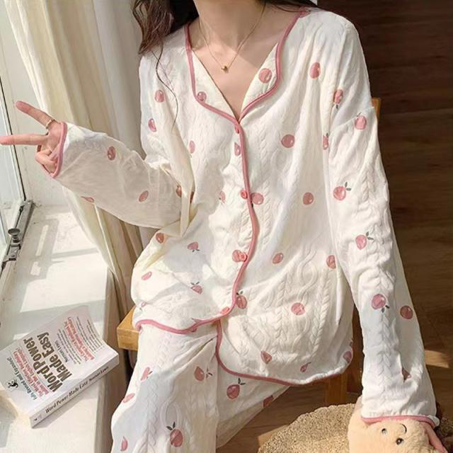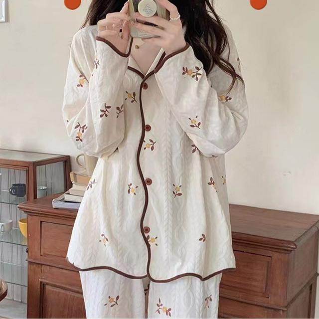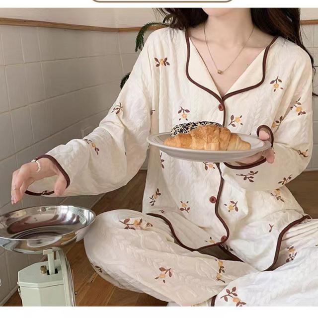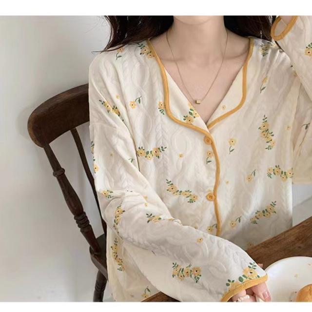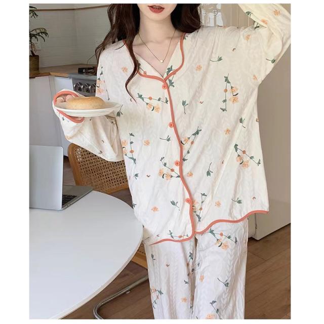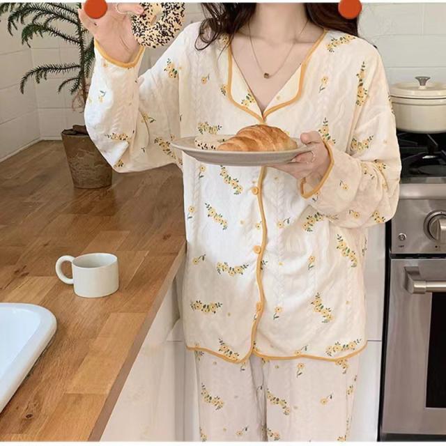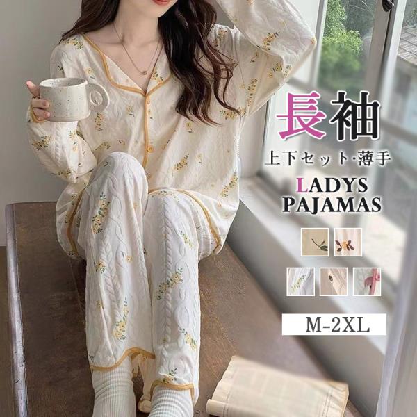 パジャマ 上下セット 綿 レディース ルームウェア 春秋冬夏 長袖 ゆったり 大きいサイズ お尻隠れ 花柄 ロングパンツ ズボン 部屋着 寝巻き