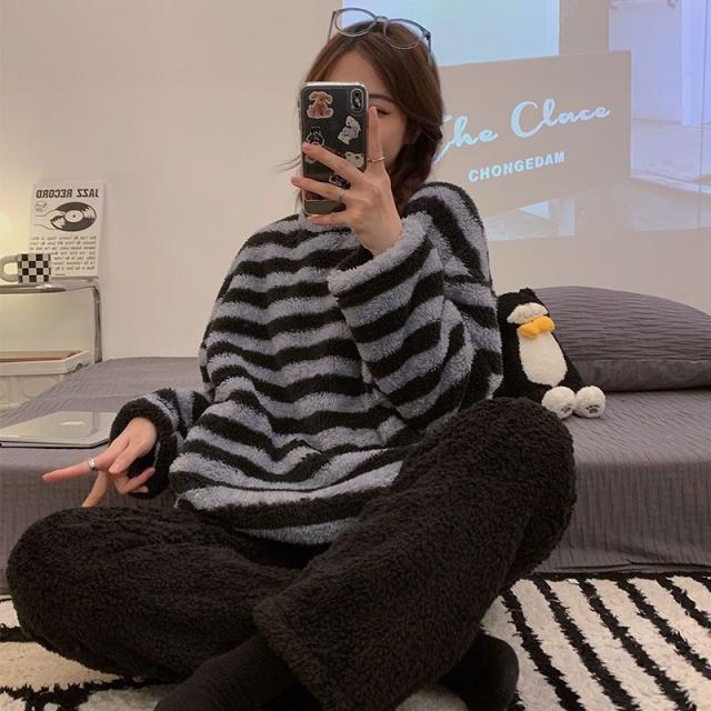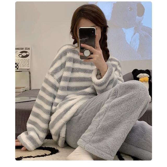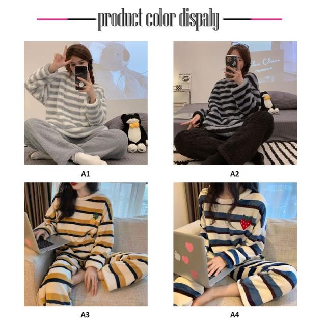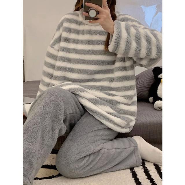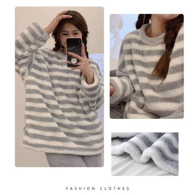 ★限定クーポン★パジャマ ルームウェア レディース 長袖 冬用 2点セット 厚手 柔らかい 暖かい もこもこ 上下 大きいサイズ 着心地 部屋着 暖か 可愛い