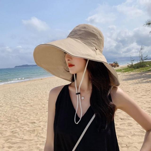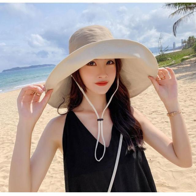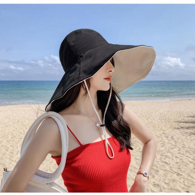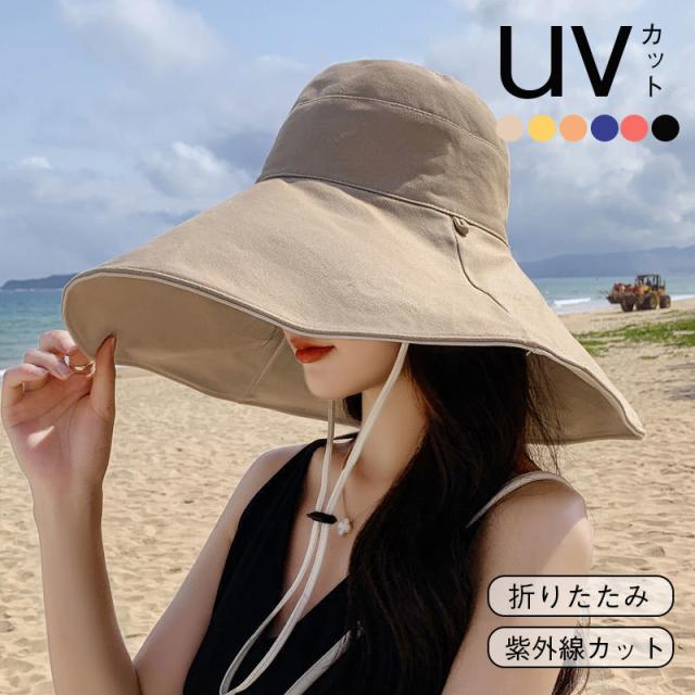 日よけ帽子 折りたたみ レディース UVカット 紐付き 大きつば広 リバーシブル 日焼け防止 紫外線対策 ハット 春夏 両面使える 小顔効果