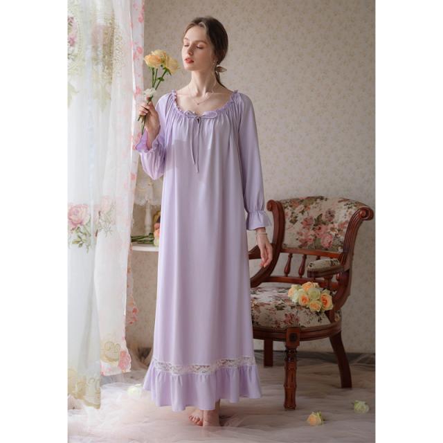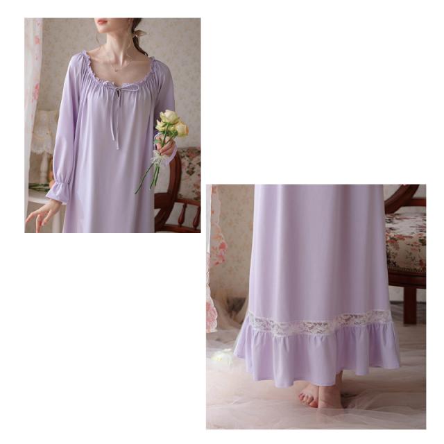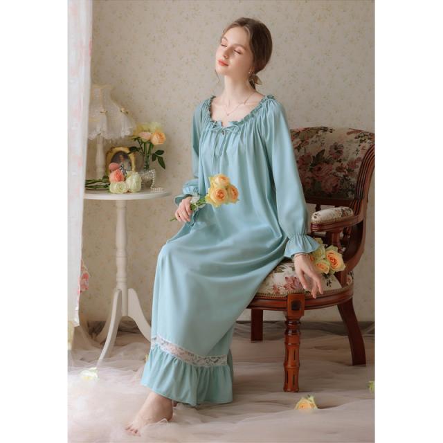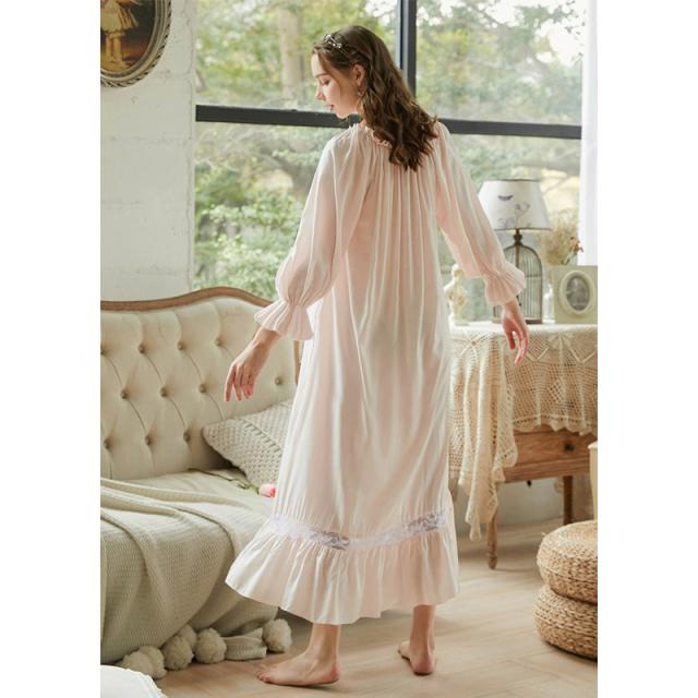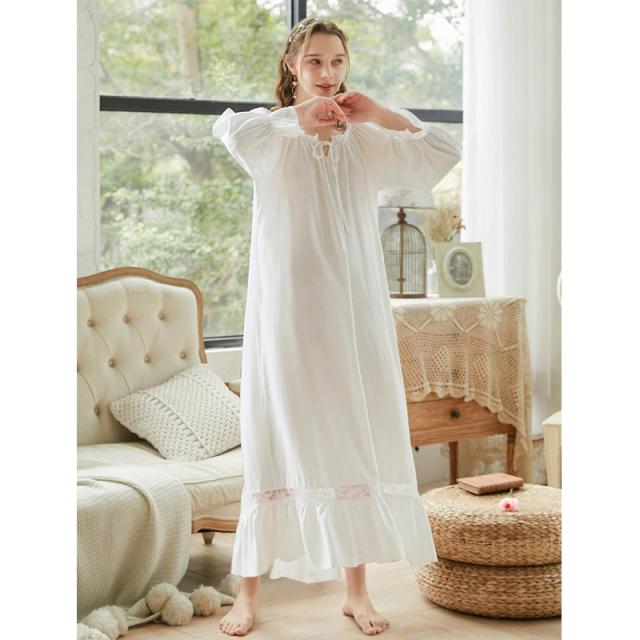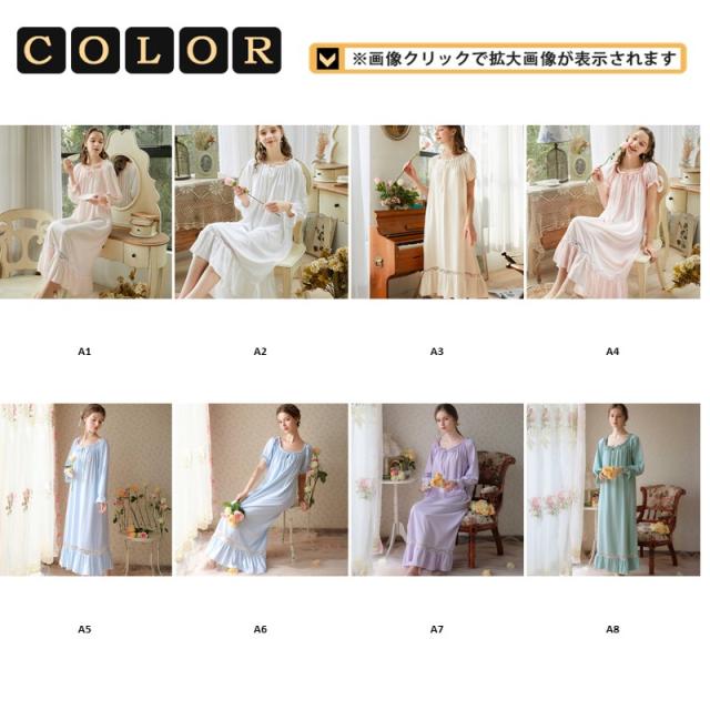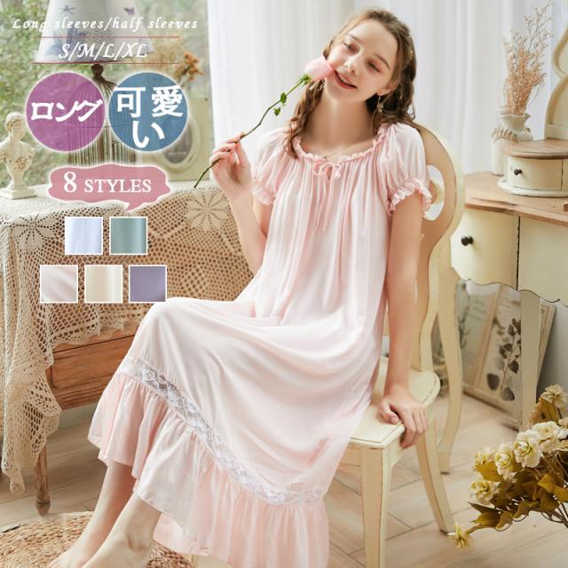 ネグリジェ レディース 春 夏 ロング ネグリジェ 姫 半袖 長袖 綿 無地 ガウン ナイトウェア ルームウェア ワンピース 女性 可愛い 部屋着