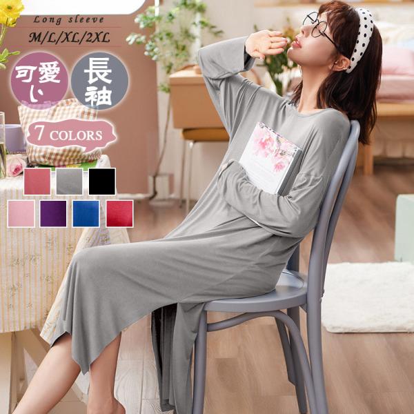 ネグリジェ 長袖ワンピース モダール綿 可愛いお姫様 ロング丈ネグリジェ パジャマ ナイトロープ レディース 部屋着 ゆったり ルームウェア