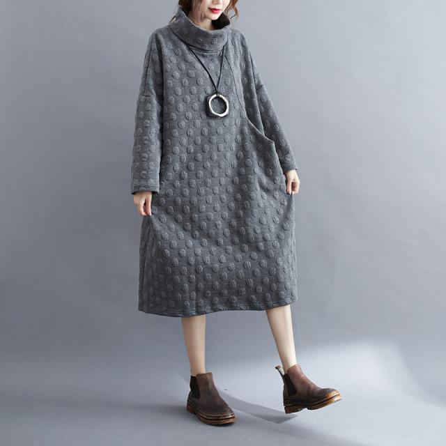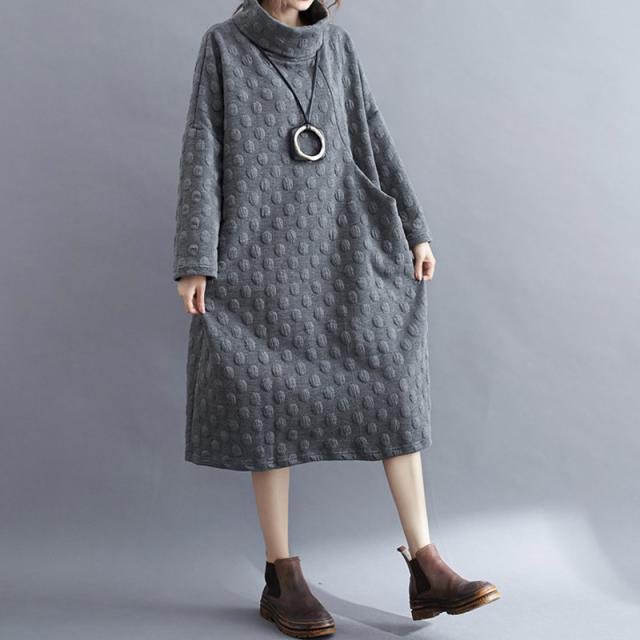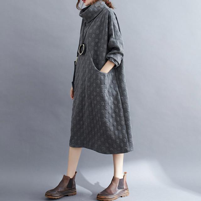 ワンピース チュニック 冬 ロング レディース 40代 膝丈 長袖 厚手 ロングワンピース ハイネック 体型カバー 無地 大きいサイズ 冬物