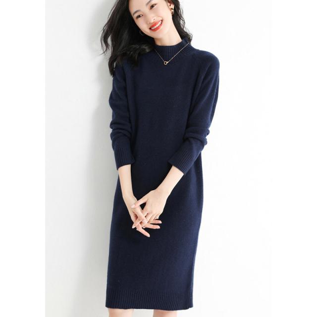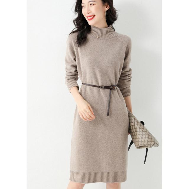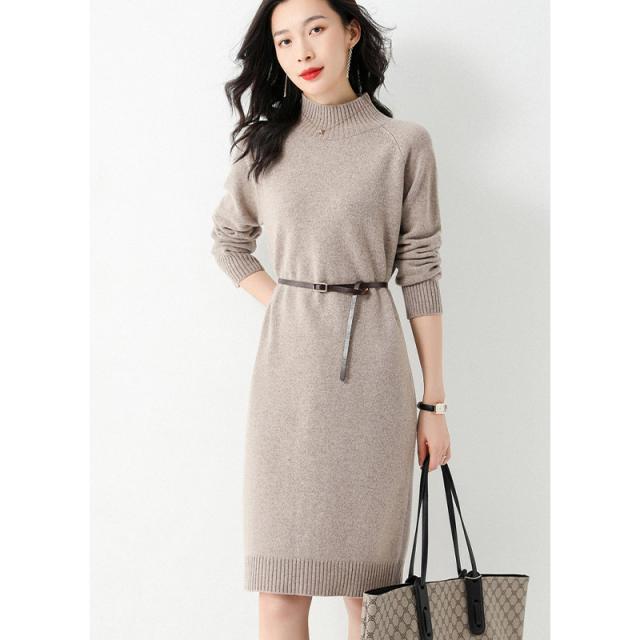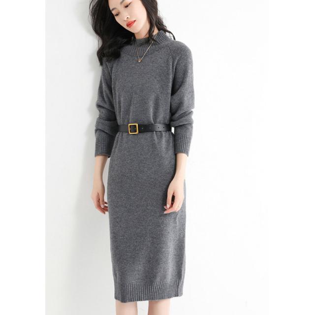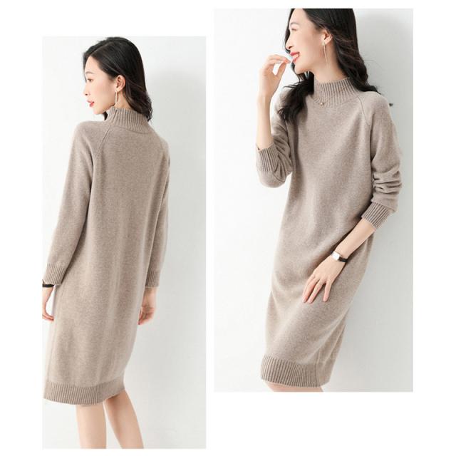 ウールニットワンピース ワンピース リブ ミディアム きれいめ 長袖 大人 ロング マキシ丈 秋冬 冬 大きいサイズ レディース ハーフハイネック