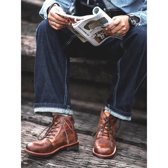 ブーツ メンズ レザー ワークブーツ ショートブーツ 光沢感 高級感 メンズ靴 エンジニアブーツ 厚底 バイクブーツ 滑り防止 カジュアル 履きやすい