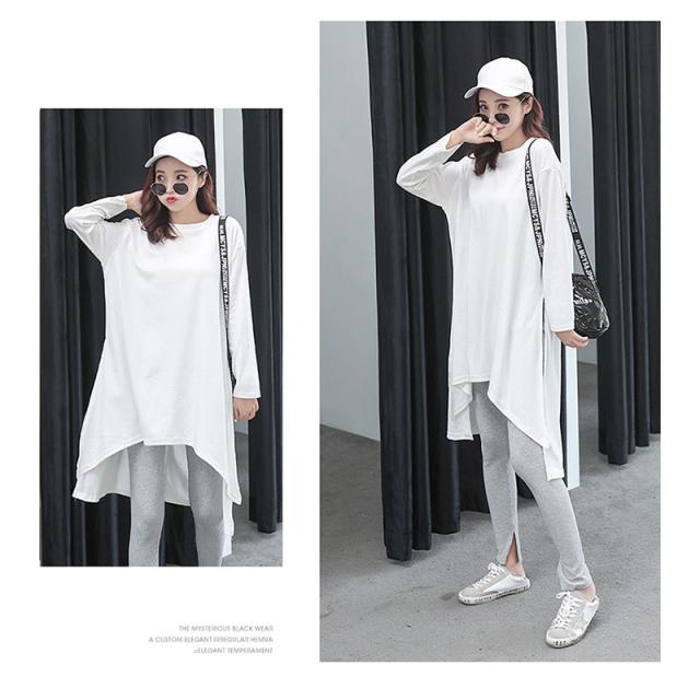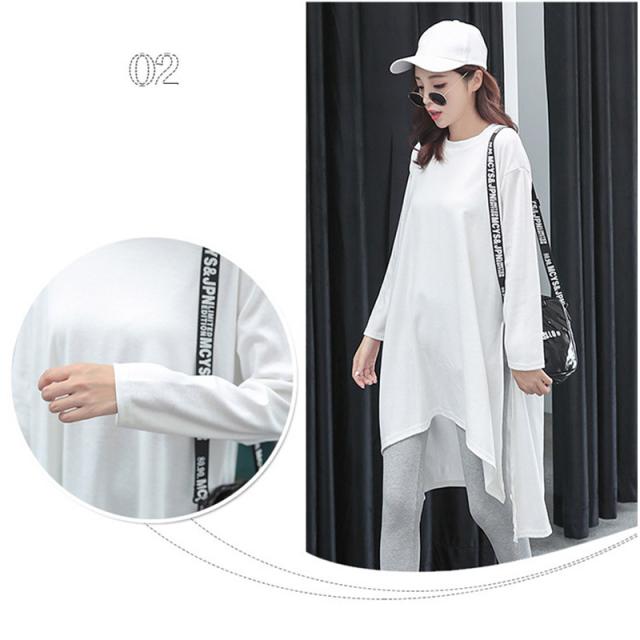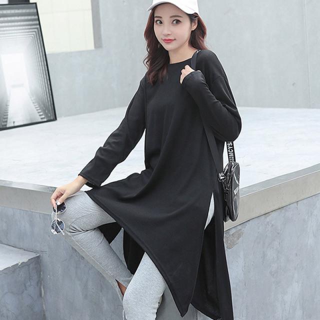 スリットtシャツ レディース ゆったり ワンピース ロング丈 チュニック ワンピース 長袖 カットソー tシャツワンピース