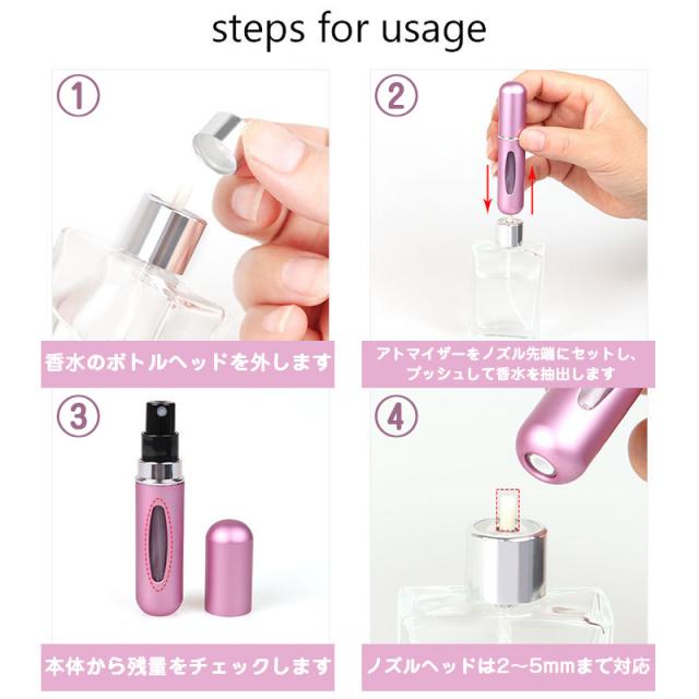 アトマイザー 香水 おしゃれ かわいい 持ち運び プレゼント 詰め替えボトル 5ml スプレー ワンプッシュ クイックチャージ 簡単 旅行 ミニボトル
