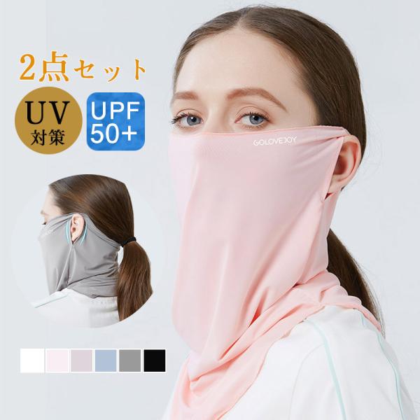 2点セット フェイスマスク 夏用 冷感 マスク フェイスカバー ネックカバー UVカット 日焼け 防止 夏 UPF50+ UVカット率95%