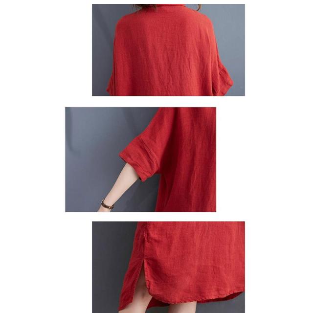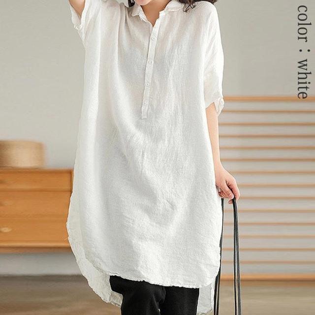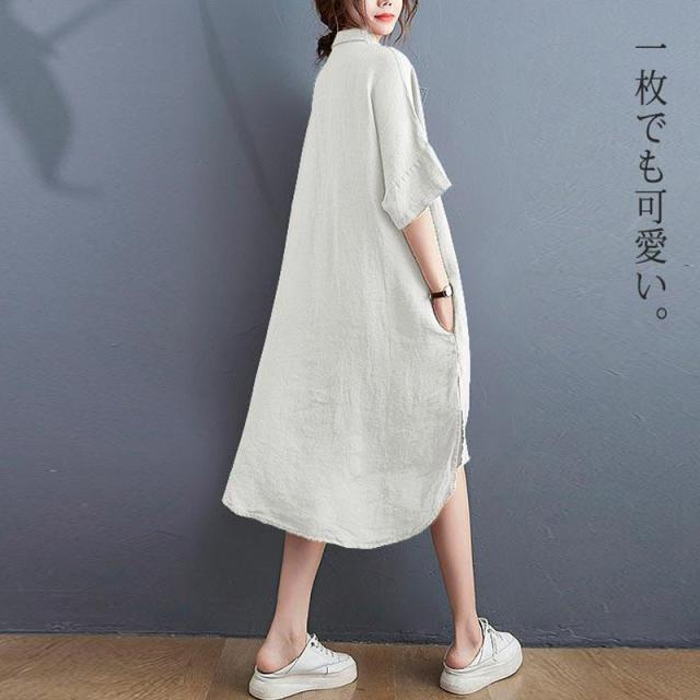 tシャツワンピース シャツ ワンピ ワンピース トップス レディース 半袖 5分袖 コットン100% 春 夏 白 襟付き 体型カバー