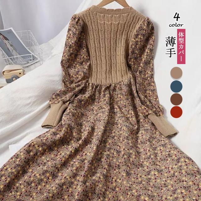 ワンピース レースワンピース 総レース 花柄ワンピース Aライン 透かしレース 七分袖 ゆったり 着痩せ 細身 おしゃれ 大人 可愛い きれい