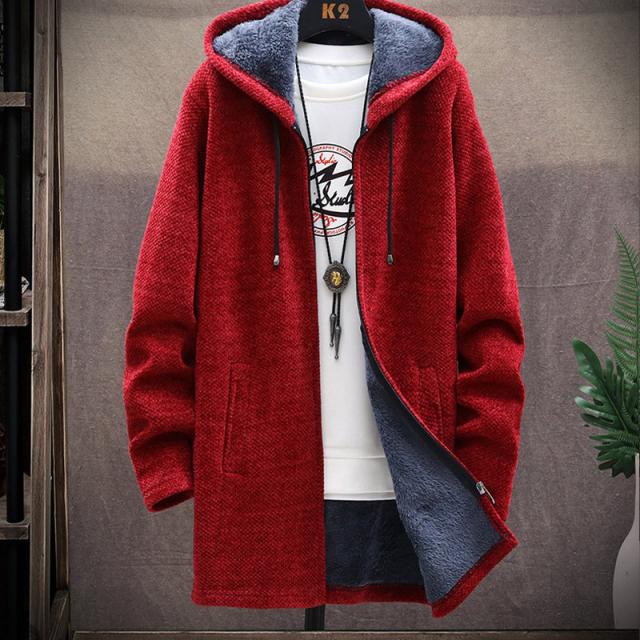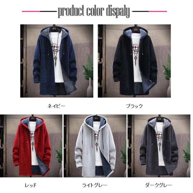 ニットパーカー メンズ フード付き ジップパーカー 長袖 冬服 裏起毛 ロング丈 ジャケット コート トップス アウター インナー