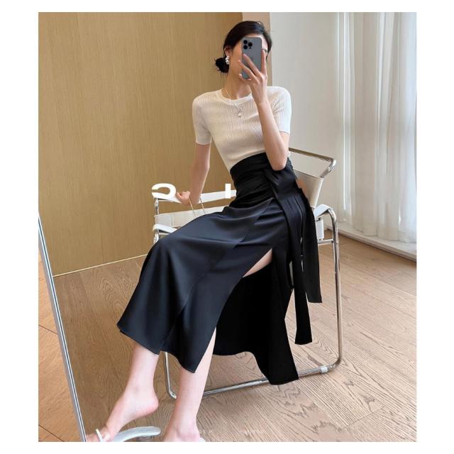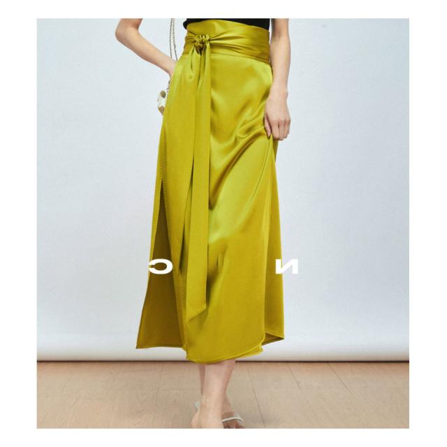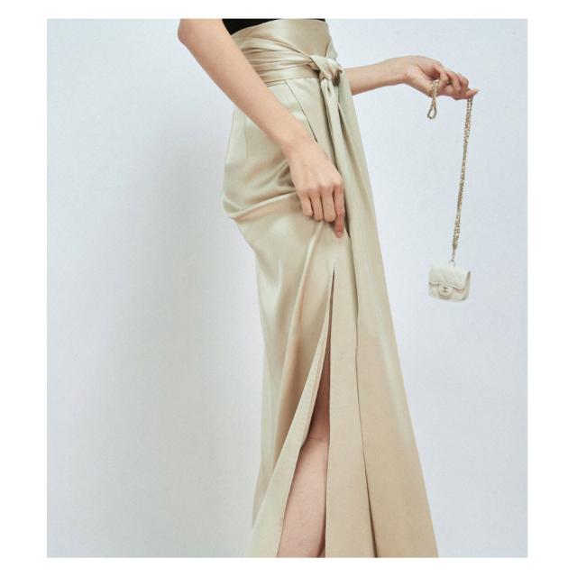 マキシ丈スカート ロング丈 春 夏 巻きスカート フレア レディース ラップスカート トレンド サテン 光沢感 ミモレ丈 カジュアル コーデ