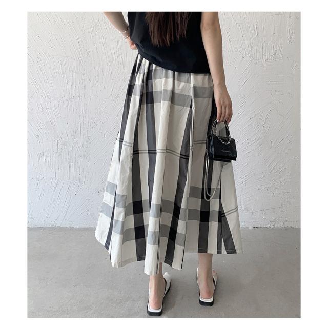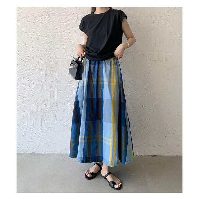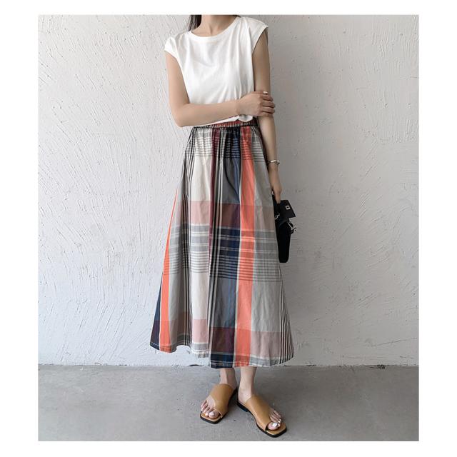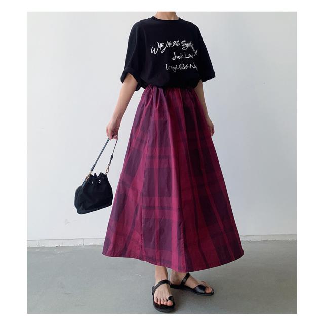 レディース ボトムス スカート カラーチェック タフタ ロング丈 マキシ丈 Aライン フレア チェック柄 体型カバー 夏 春 秋 ウエストゴム