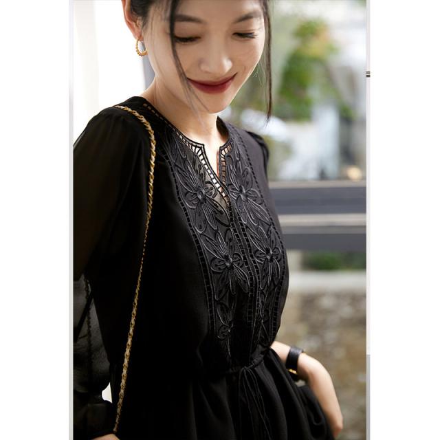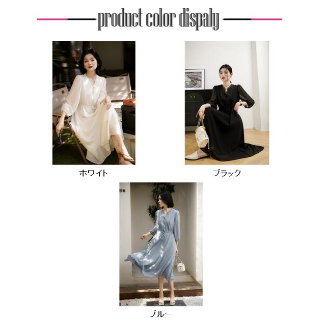 ワンピース ロングワンピース 結婚式 刺繍 長袖 フレア レディース 大きいサイズ フォーマル 黒 ロング パーティドレス きれいめ 春 秋