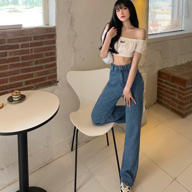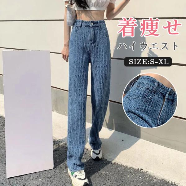 ★限定クーポン★ジーンズ 編込み 美シルエット ハイウエスト ワイドデニムパンツ ゆったり 脚長効果 韓国ファッション リラックスパン 春 秋 着痩せ