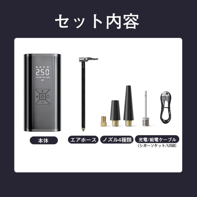 電動空気入れ バイク 充電式 自動 小型 コンパクト 自動車 エアポンプ サイクル 仏式 英式 米式 ロードバイク クロスバイク 電動ポンプ