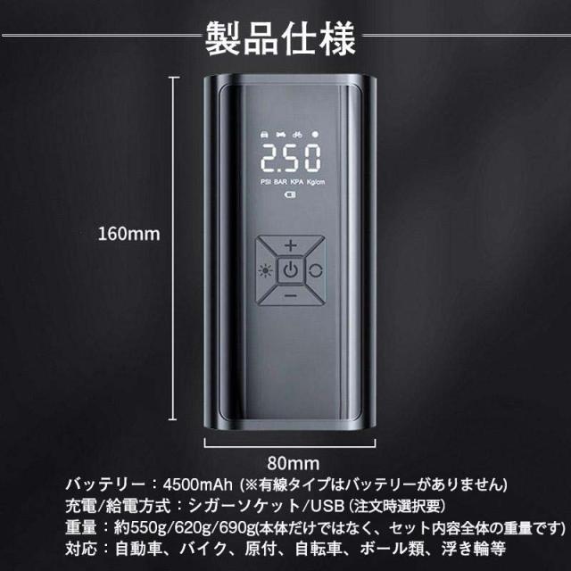 電動 空気入れ 自動車 エアーポンプ 充電式 車 バイク 自転車 ボール タイヤ 浮き輪 USB コンプレッサー 軽量 小型 事故 防止 防災 懐中電灯