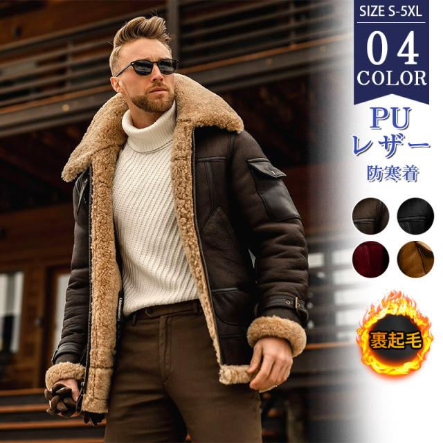 メンズ 革ジャン ムートンコート レザージャケット 裏起毛 ムートンジャケット メンズジャケット バイクジャケット ライダースジャケット お兄系