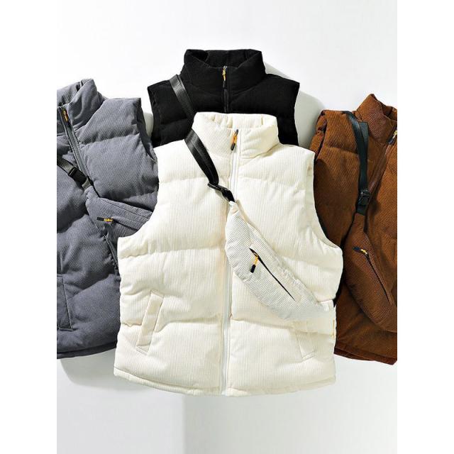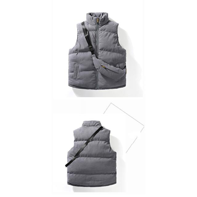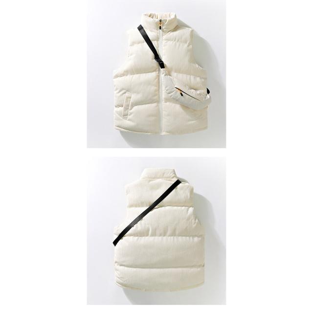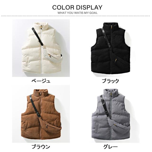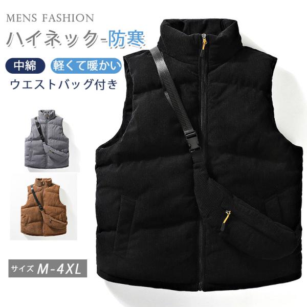 ウエストバッグ付き ベスト レディース メンズ ユニセックス 中綿ベスト ダウンベスト ハイネック 中綿入り チョッキ ジレ アウター トップス 冬