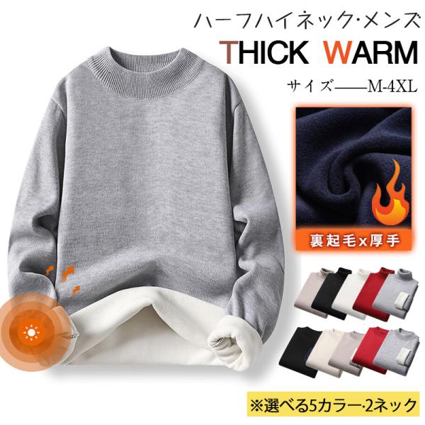 ★限定クーポン★裏起毛 ハーフハイネックセーター ニットセーター メンズ モックネック 無地 シンプル ビジネス オフィス 長袖 ニットソー インナー 綿 秋 冬