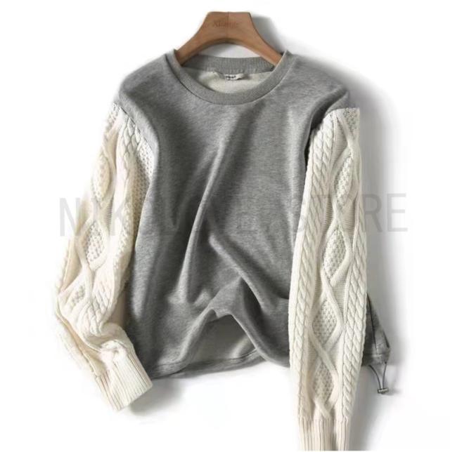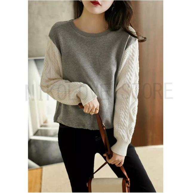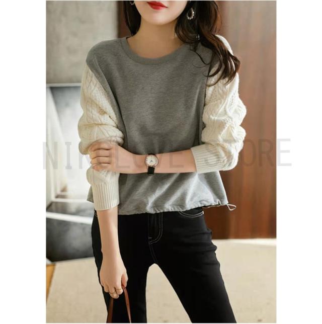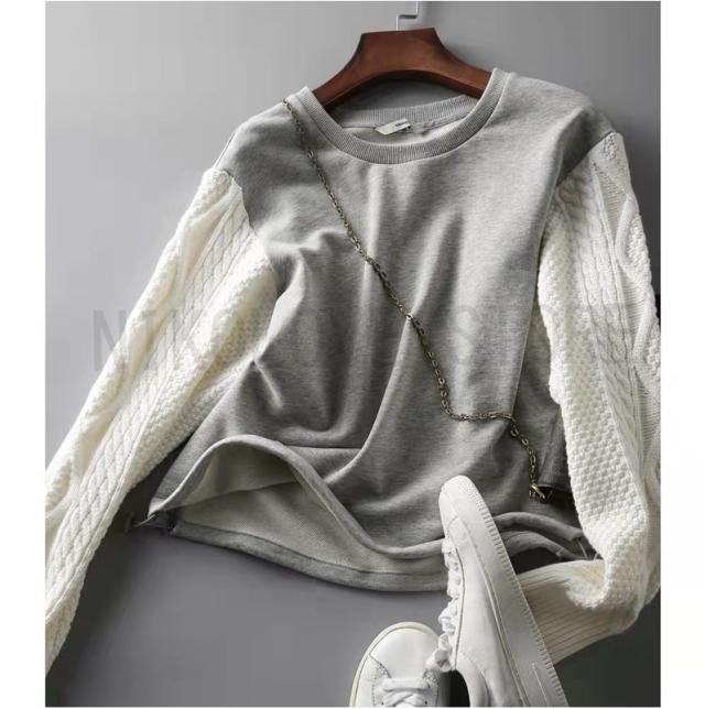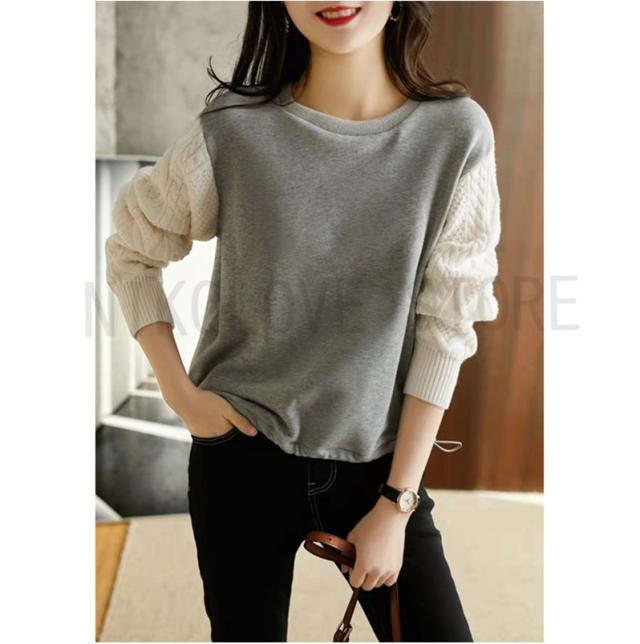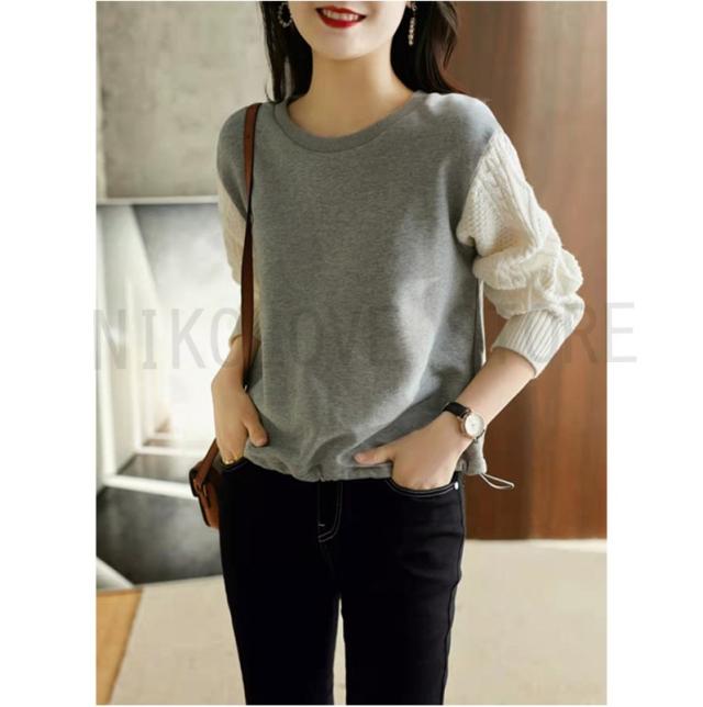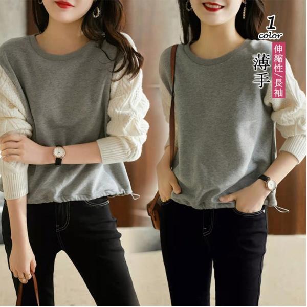 プルオーバー Tシャツ ニット袖 シンプル 長袖 レディース トップス プルオーバートップス ゆるトップス ニット切り替え ドロップショルダー