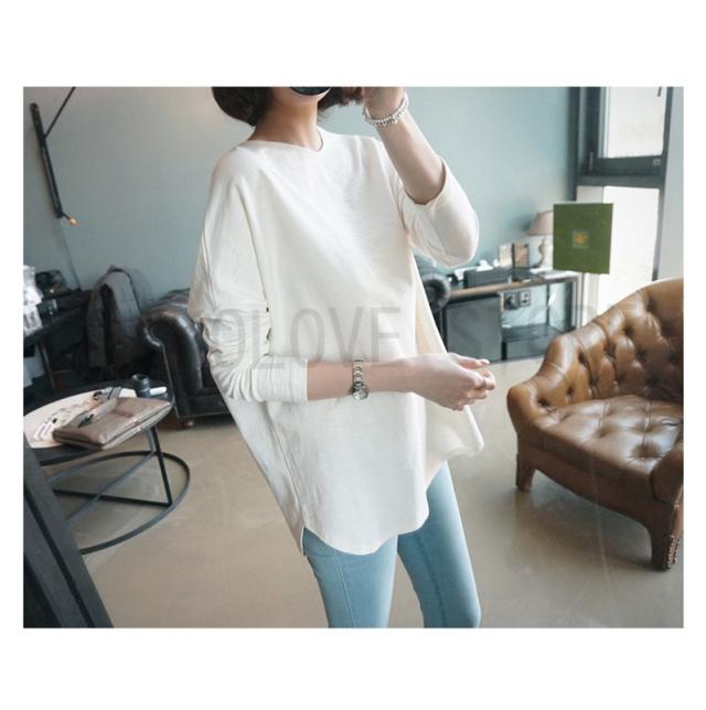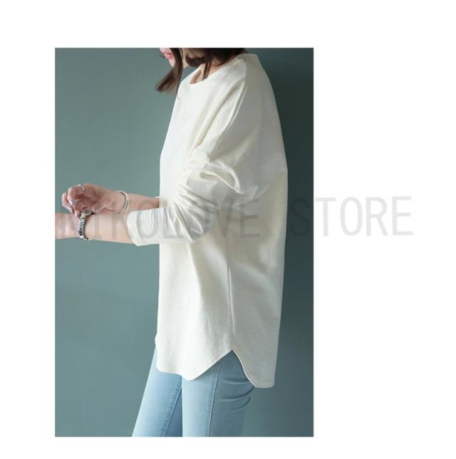 Tシャツ ゆるT ゆるトップス シンプル 無地 ドロップショルダー ゆったり レディース トップス 長袖 カットソー レディース 韓国 春秋
