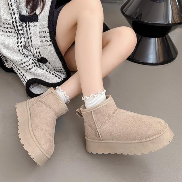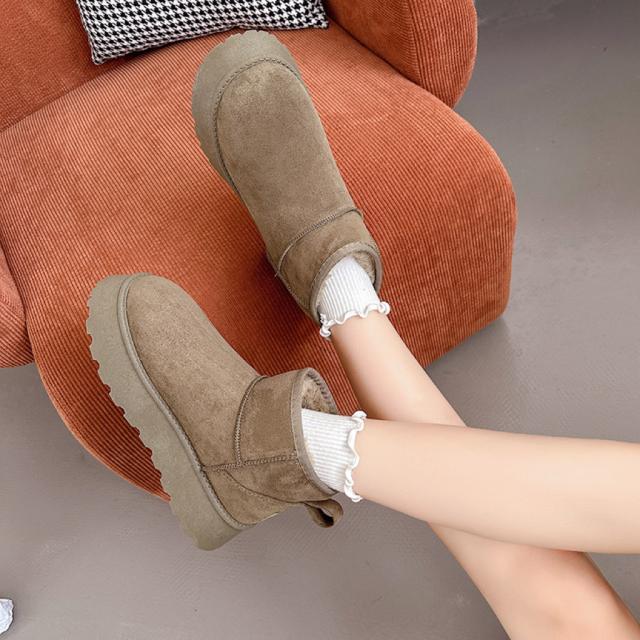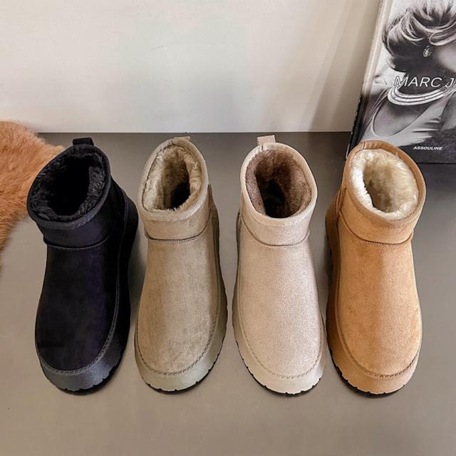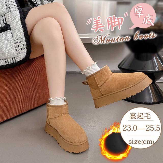 厚底ムートンブーツ ショート レディース 秋冬 ファーシューズ プラットフォーム あったか 暖かい 防寒 履きやすい カジュアル 美脚