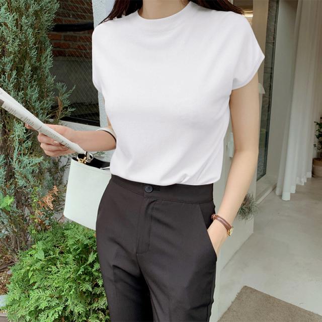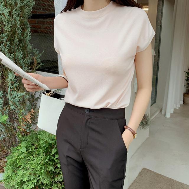 Tシャツ シャツ ニットシャツ ニット レディース 半袖 リブニット 薄手 無地 トップス 接触冷感 プチハイネック 涼しい 夏用 肌着 一部即納
