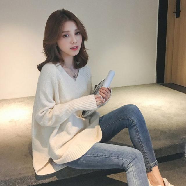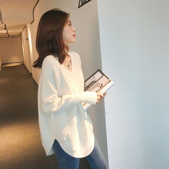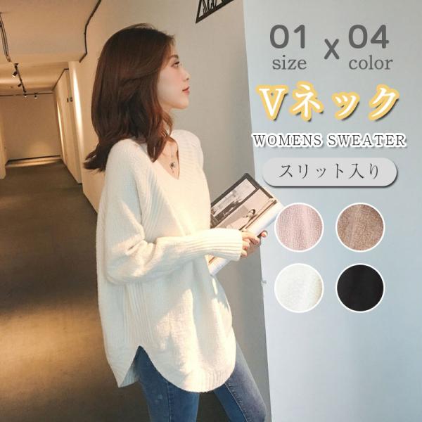 ★限定クーポン★ニットセーター レディース Vネック オーバーサイズ ゆったり スリット入 あったか トップス カットソー 秋物 シンプル 通勤 OL