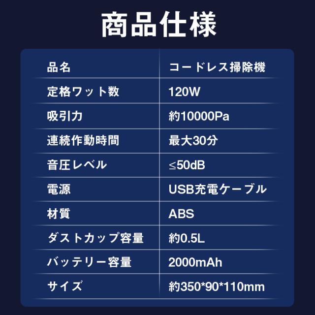 ハンディクリーナー コードレス掃除機 車用掃除機 10000pa カークリーナー ハンドクリーナー USB充電式 強力吸引 ワイヤレス フィルター