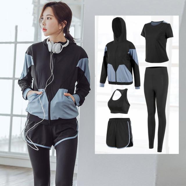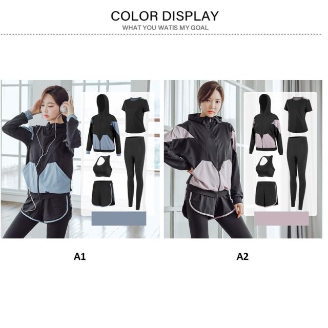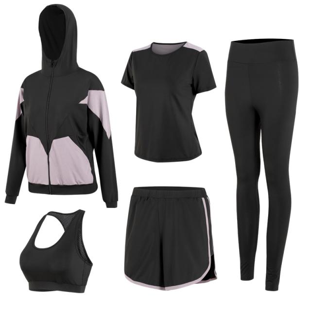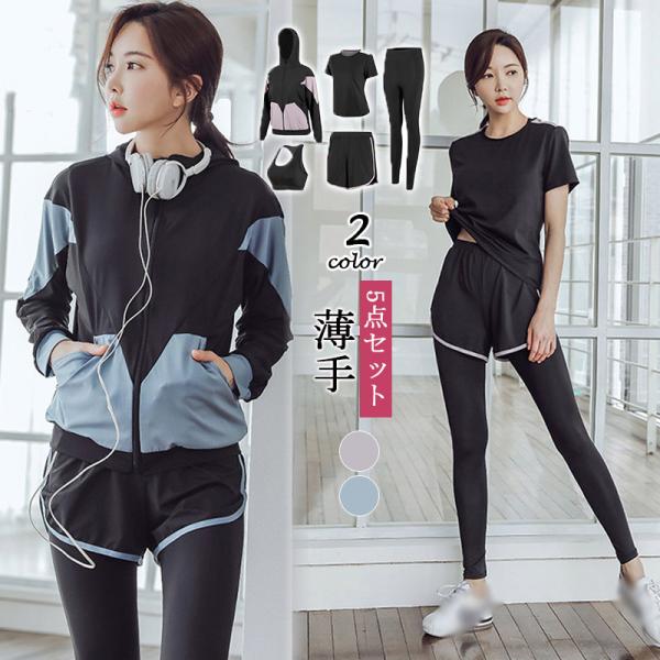 スポーツウェア 5点セット ヨガ トレーニングウェア レディース オールシーズン UV対策 吸汗速乾 送料無料 ストレッチ お散歩 ウォーキングウェア