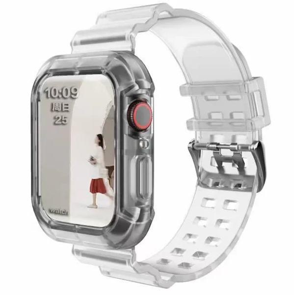 Apple Watch用の透明なプラスチックストラップ クリアバンドとケース iwatch 3 38mm 40mm 49mm 45mm 44mm 42mm 41mm シリーズ9 8シリーズ7 シリーズ6 se