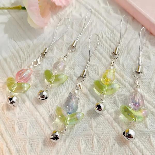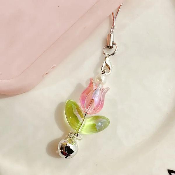 女性と女の子のための手作りの電話チャームストラップストラップ かわいい唇の花 かわいいカワイイキーホルダー ビーズペンダント