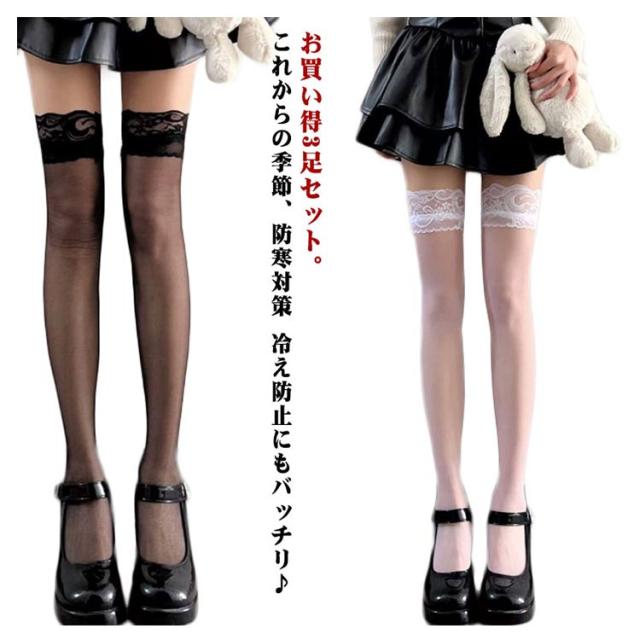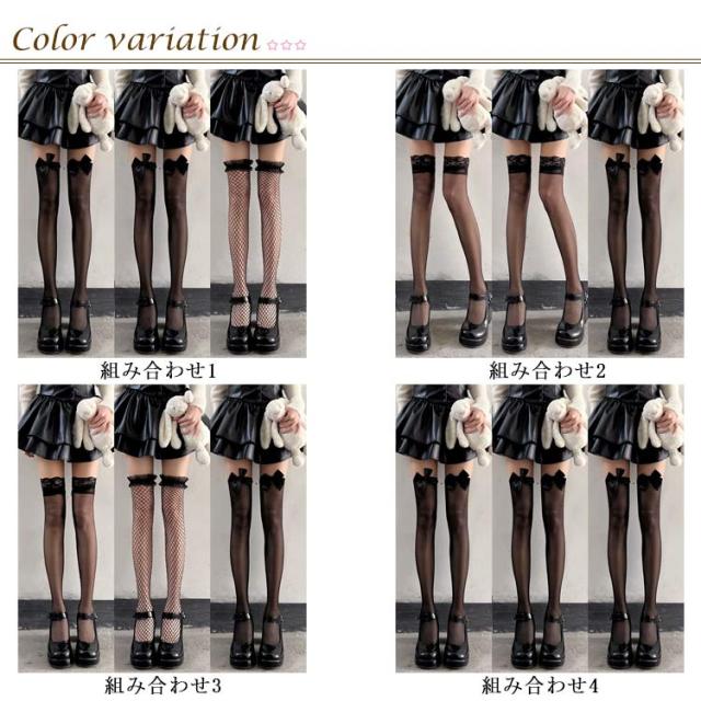レース付き ニーハイソックス ひざ下 可愛い 3点セット 3点セット 地雷系 姫系 レース オーバーニーソックス 美脚ソックス リボン 通学 靴下 靴下 量産型 レディース 病みかわ cosplayや制服用 ロリータ コスプレ ハロウィン